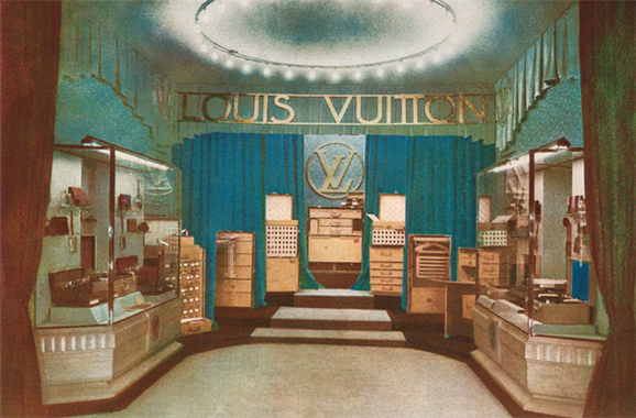 1925 年,裝飾藝術(shù)與現代工業(yè)國際博覽會(huì )(裝飾藝術(shù)即得名于該博覽會(huì ))在巴黎召開(kāi),加斯頓時(shí)任博覽會(huì )副總裁一職,路易威登將其展位以綠色和銀色進(jìn)行裝飾,展示了最具時(shí)下流行風(fēng)格的設計作品。優(yōu)雅的線(xiàn)條和富有幾何感的造型將經(jīng)典LV 首字母視覺(jué)圖標的品牌標志包含于圓形其中。